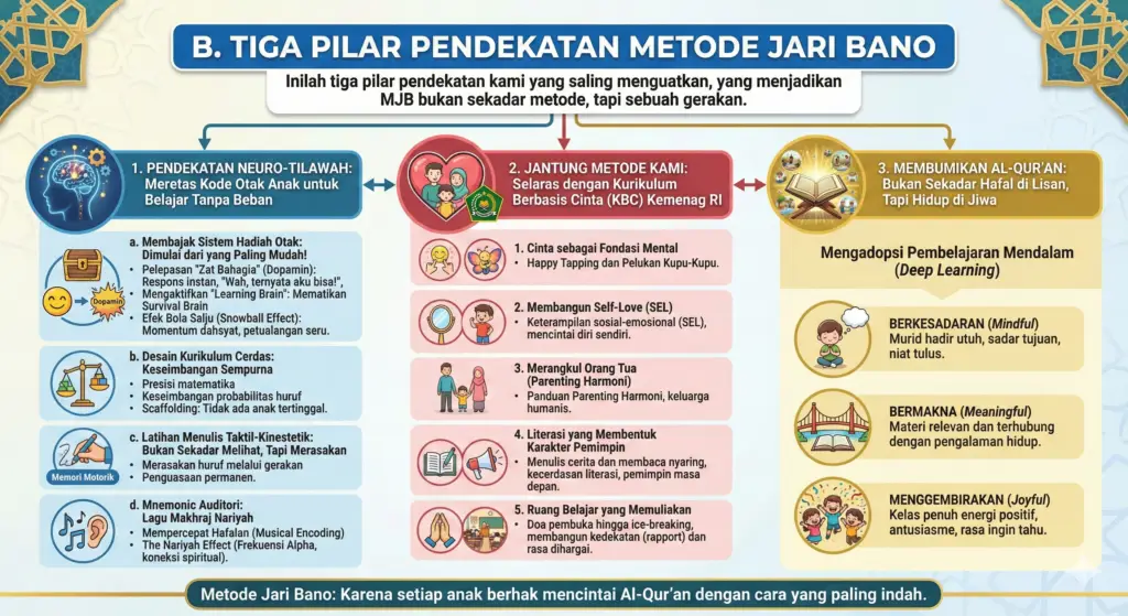 Inilah tiga pilar pendekatan kami yang saling menguatkan, yang menjadikan MJB bukan sekadar metode, tapi sebuah gerakan.
